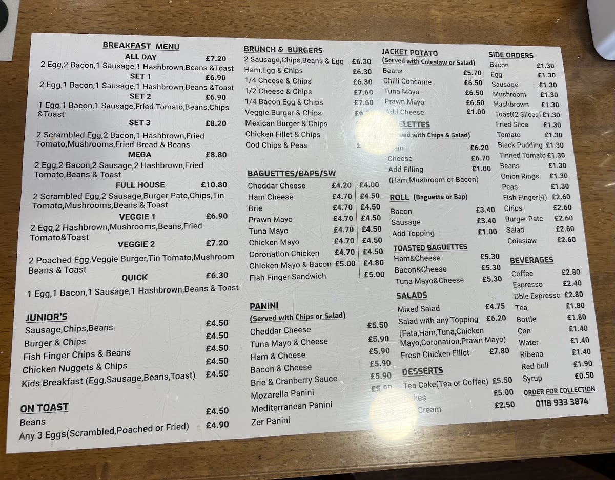 Welcome to Mortimer Café, a delightful eatery nestled in Mortimer Common, Reading. This café shines with its varied menu, offering everything from hearty all-day breakfasts to fresh salads and scrumptious baguettes. A must-try is the Full House breakfast, reputed to be exceptionally flavorful, as noted by satisfied customers. Vegetarians will appreciate options like the Mega Veggie breakfast and vibrant salads.